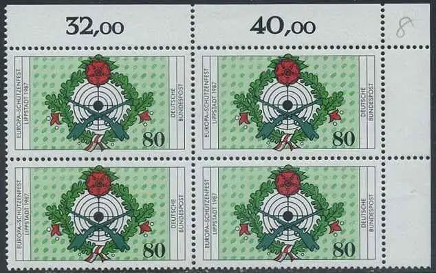 BUND 1987 Michel-Nummer 1330 postfrisch BLOCK ECKRAND oben rechts