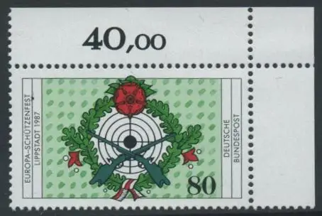 BUND 1987 Michel-Nummer 1330 postfrisch EINZELMARKE ECKRAND oben rechts (a)