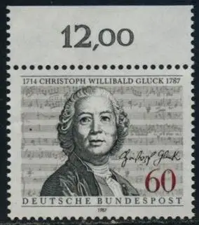 BUND 1987 Michel-Nummer 1343 postfrisch EINZELMARKE RAND oben (a)