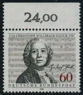 BUND 1987 Michel-Nummer 1343 postfrisch EINZELMARKE RAND oben (c)