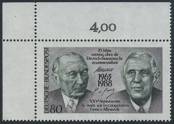 BUND 1988 Michel-Nummer 1351 postfrisch EINZELMARKE ECKRAND oben links