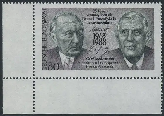 BUND 1988 Michel-Nummer 1351 postfrisch EINZELMARKE ECKRAND unten links