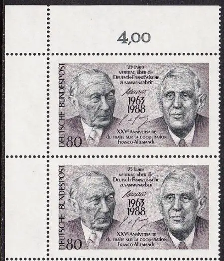 BUND 1988 Michel-Nummer 1351 postfrisch vert.PAAR ECKRAND oben links