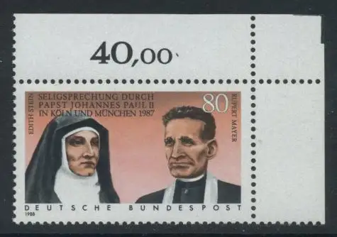 BUND 1988 Michel-Nummer 1352 postfrisch EINZELMARKE ECKRAND oben rechts
