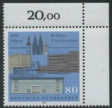 BUND 1988 Michel-Nummer 1370 postfrisch EINZELMARKE ECKRAND oben rechts