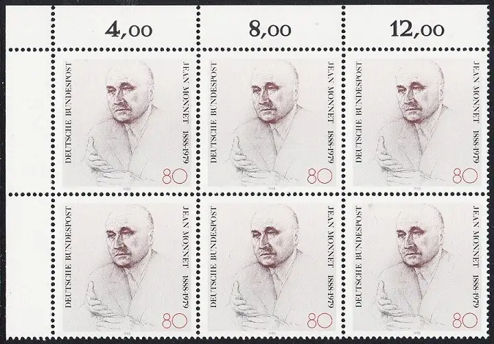 BUND 1988 Michel-Nummer 1372 postfrisch horiz.BLOCK(6) ECKRAND oben links