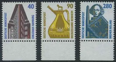 BUND 1988 Michel-Nummer 1379-1381 postfrisch SATZ(3) EINZELMARKEN RÄNDER unten