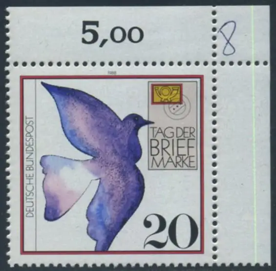 BUND 1988 Michel-Nummer 1388 postfrisch EINZELMARKE ECKRAND oben rechts (b)