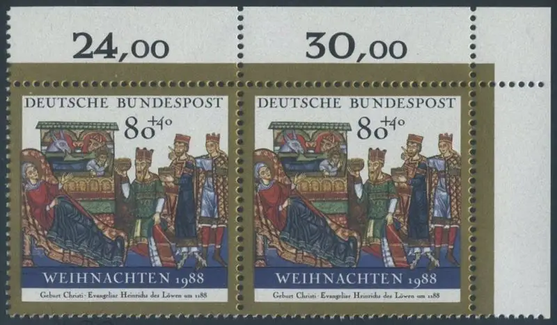 BUND 1988 Michel-Nummer 1396 postfrisch horiz.PAAR ECKRAND oben rechts