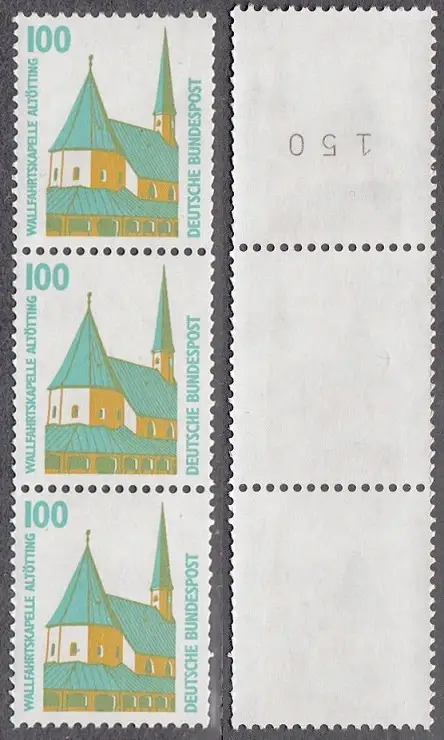 BUND 1989 Michel-Nummer 1406 postfrisch vert.STRIP(3) m/ rücks.Rollennummer 150