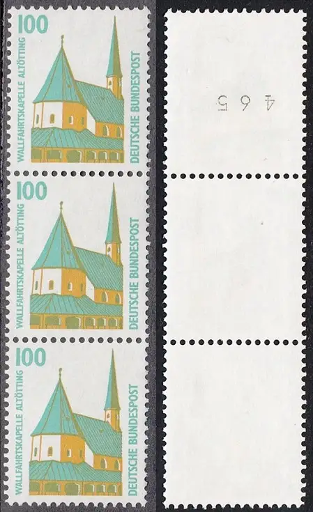 BUND 1989 Michel-Nummer 1406 postfrisch vert.STRIP(3) m/ rücks.Rollennummer 465