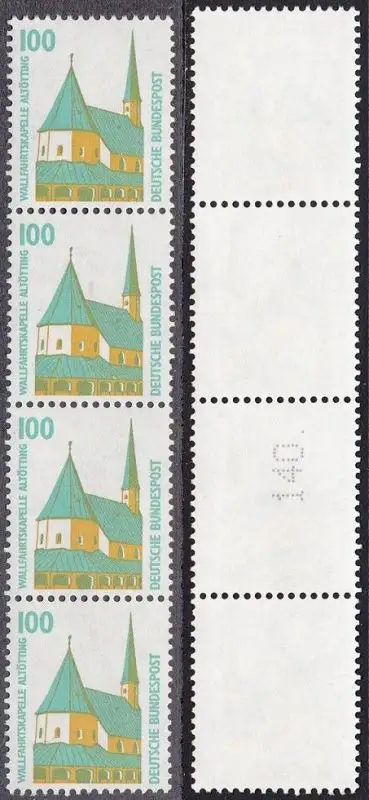 BUND 1989 Michel-Nummer 1406 postfrisch vert.STRIP(4) m/ rücks.Rollennummer 140