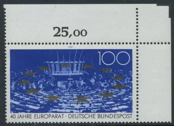 BUND 1989 Michel-Nummer 1422 postfrisch EINZELMARKE ECKRAND oben rechts