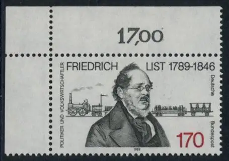 BUND 1989 Michel-Nummer 1429 postfrisch EINZELMARKE ECKRAND oben links