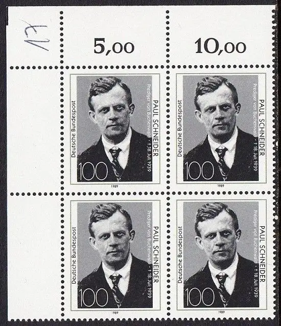 BUND 1989 Michel-Nummer 1431 postfrisch BLOCK ECKRAND oben links