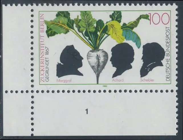 BUND 1992 Michel-Nummer 1599 postfrisch EINZELMARKE ECKRAND unten links (FN)