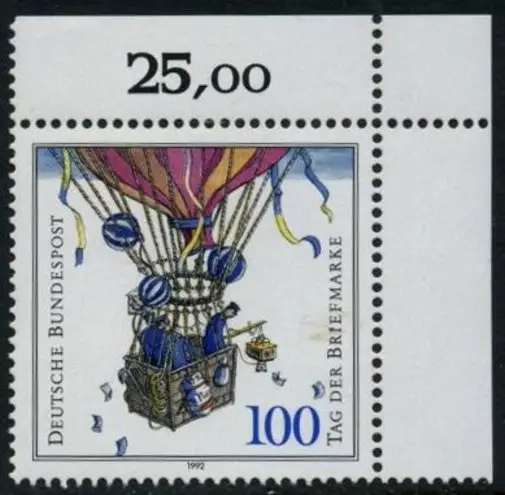 BUND 1992 Michel-Nummer 1638 postfrisch EINZELMARKE ECKRAND oben rechts (a)