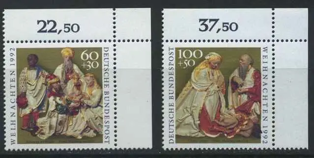 BUND 1992 Michel-Nummer 1639-1640 postfrisch SATZ(2) EINZELMARKEN ECKRÄNDER oben rechts