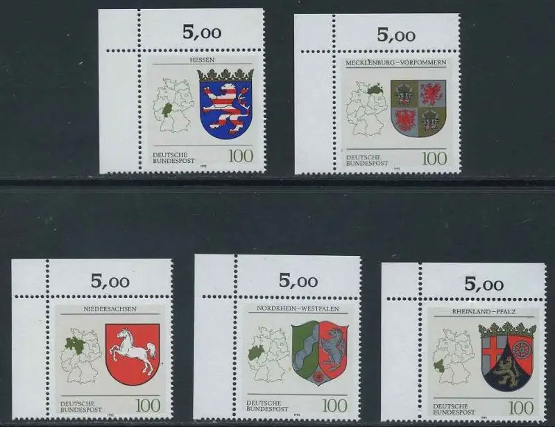 BUND 1993 Michel-Nummer 1660-1664 postfrisch SATZ(5) EINZELMARKEN ECKRÄNDER oben links