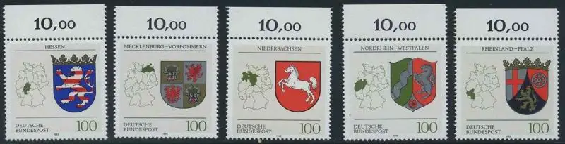 BUND 1993 Michel-Nummer 1660-1664 postfrisch SATZ(5) EINZELMARKEN RÄNDER oben (a)