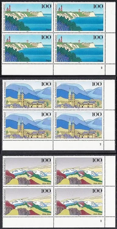 BUND 1993 Michel-Nummer 1684-1686 postfrisch SATZ(3) BLÖCKE ECKRAND unten rechts (FN/b)