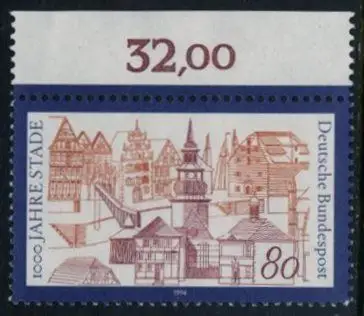 BUND 1994 Michel-Nummer 1709 postfrisch EINZELMARKE RAND oben
