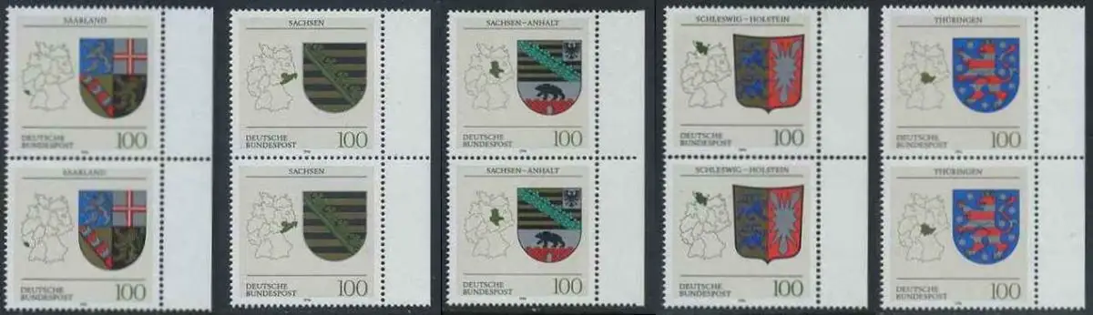 BUND 1994 Michel-Nummer 1712-1716 postfrisch SATZ(5) vert.PAARE RÄNDER rechts