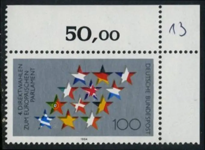 BUND 1994 Michel-Nummer 1724 postfrisch EINZELMARKE ECKRAND oben rechts