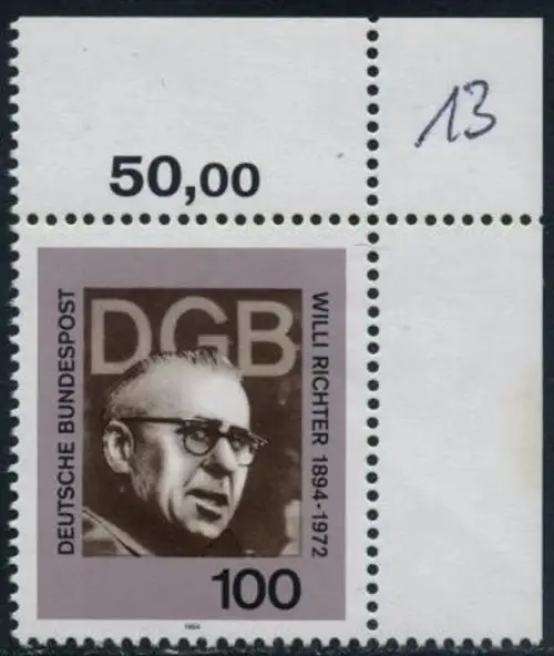 BUND 1994 Michel-Nummer 1753 postfrisch EINZELMARKE ECKRAND oben rechts