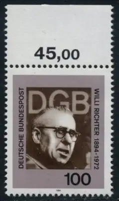 BUND 1994 Michel-Nummer 1753 postfrisch EINZELMARKE RAND oben (c)