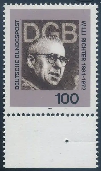 BUND 1994 Michel-Nummer 1753 postfrisch EINZELMARKE RAND unten