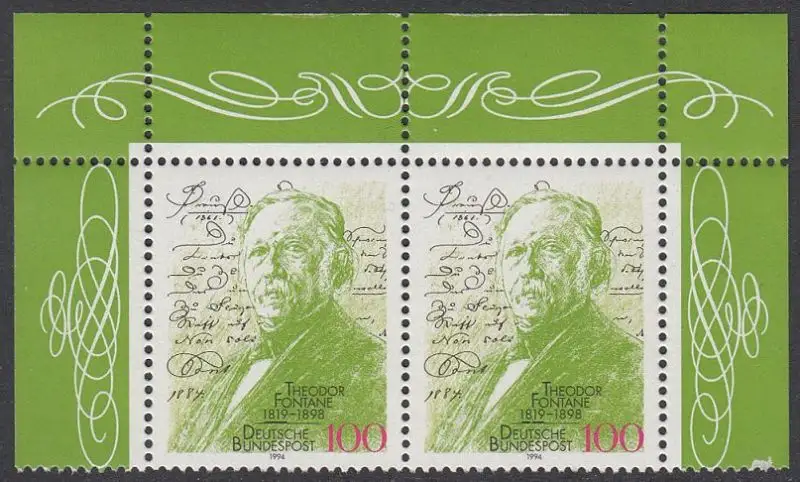 BUND 1994 Michel-Nummer 1767 postfrisch horiz.PAAR ECKRÄNDER oben rechts/oben links
