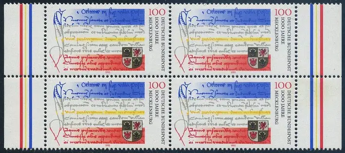 BUND 1995 Michel-Nummer 1782 postfrisch BLOCK RÄNDER rechts/links