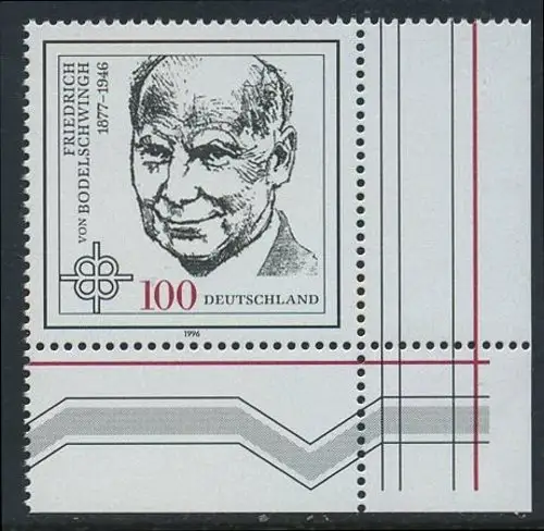 BUND 1996 Michel-Nummer 1835 postfrisch EINZELMARKE ECKRAND unten rechts