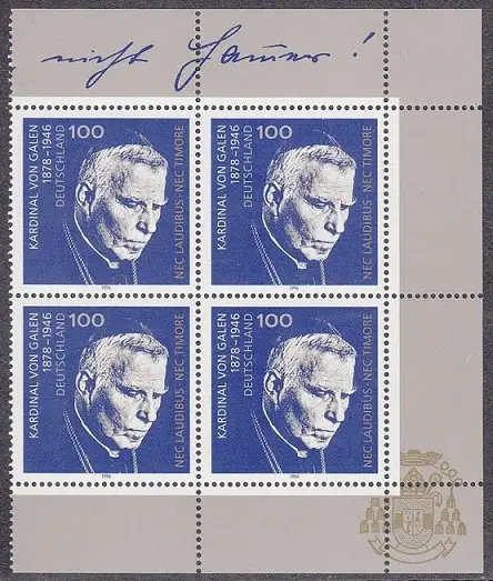 BUND 1996 Michel-Nummer 1848 postfrisch BLOCK ECKRÄNDER oben rechts/unten rechts