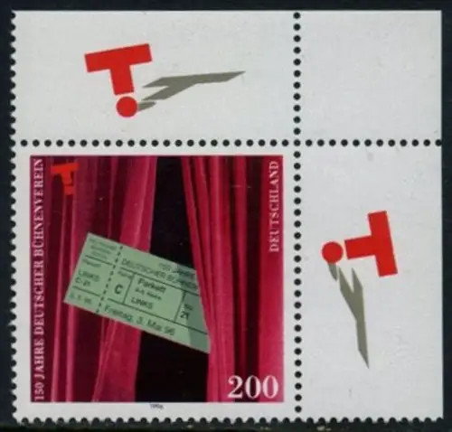 BUND 1996 Michel-Nummer 1857 postfrisch EINZELMARKE ECKRAND oben rechts