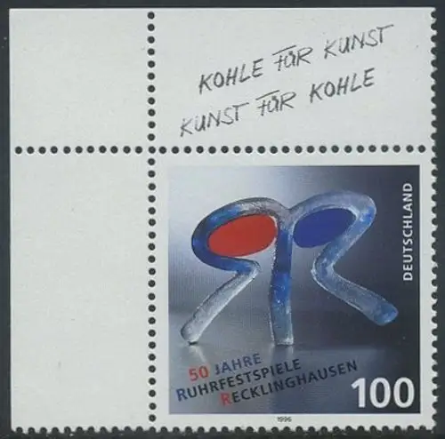 BUND 1996 Michel-Nummer 1859 postfrisch EINZELMARKE ECKRAND oben links