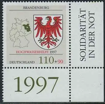 BUND 1997 Michel-Nummer 1941 postfrisch EINZELMARKE ECKRAND unten rechts