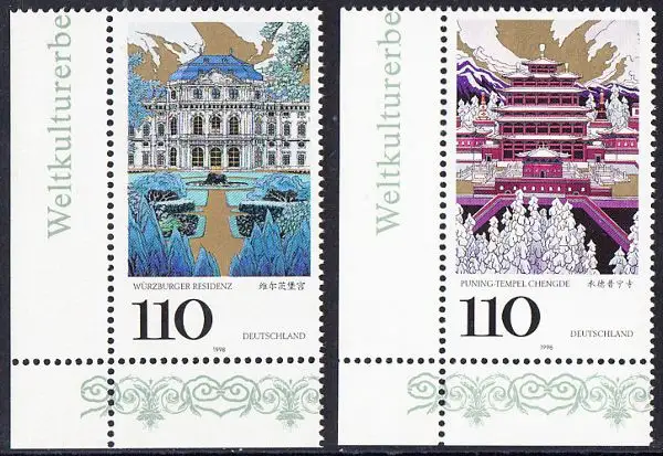 BUND 1998 Michel-Nummer 2007-2008 postfrisch SATZ(2) EINZELMARKEN ECKRÄNDER unten links