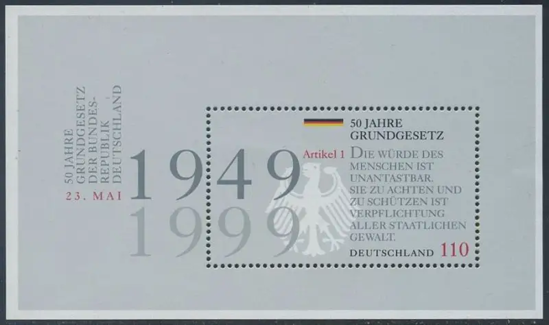 BUND 1999 Michel-Nummer 2050 postfrisch BOGEN(1) -Blockausgabe 48-