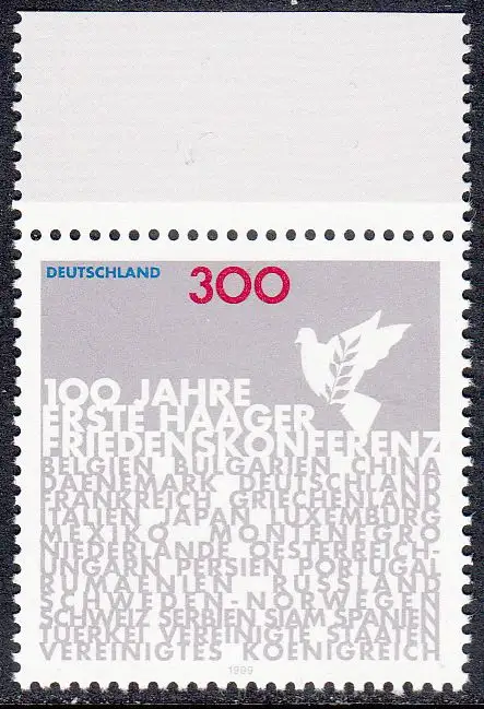 BUND 1999 Michel-Nummer 2066 postfrisch EINZELMARKE RAND oben (b)