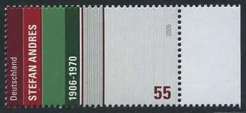 BUND 2006 Michel-Nummer 2545 postfrisch EINZELMARKE RAND rechts (a)