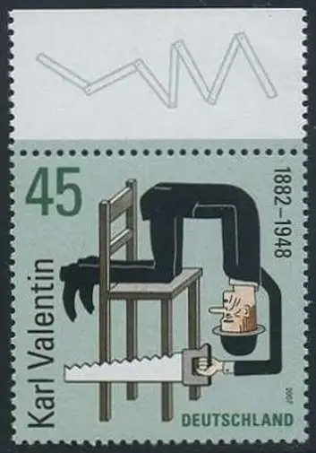 BUND 2007 Michel-Nummer 2610 postfrisch EINZELMARKE RAND oben (b)