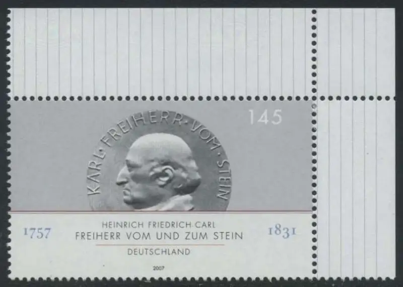 BUND 2007 Michel-Nummer 2624 postfrisch EINZELMARKE ECKRAND oben rechts