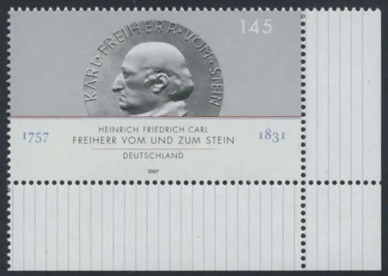 BUND 2007 Michel-Nummer 2624 postfrisch EINZELMARKE ECKRAND unten rechts