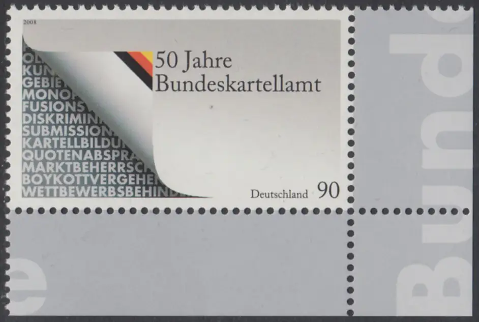 BUND 2008 Michel-Nummer 2641 postfrisch EINZELMARKE ECKRAND unten rechts