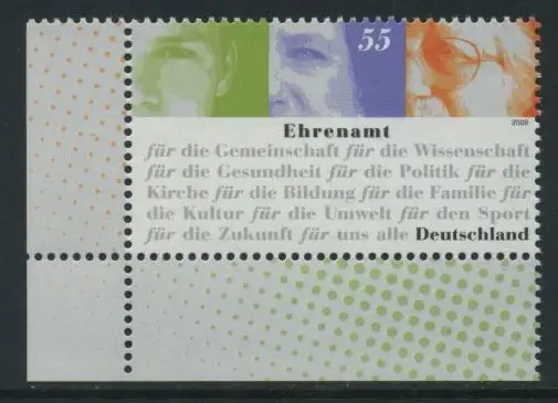 BUND 2008 Michel-Nummer 2674 postfrisch EINZELMARKE ECKRAND unten links