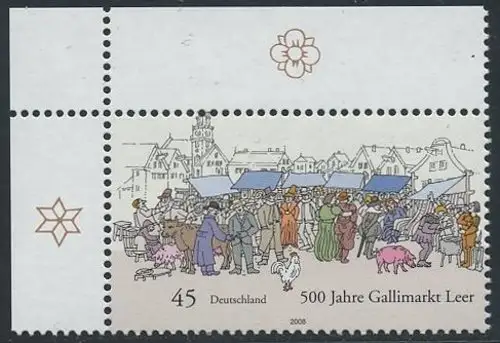 BUND 2008 Michel-Nummer 2696 postfrisch EINZELMARKE ECKRAND oben links
