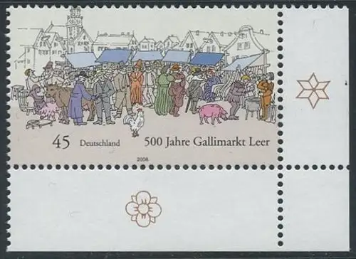 BUND 2008 Michel-Nummer 2696 postfrisch EINZELMARKE ECKRAND unten rechts