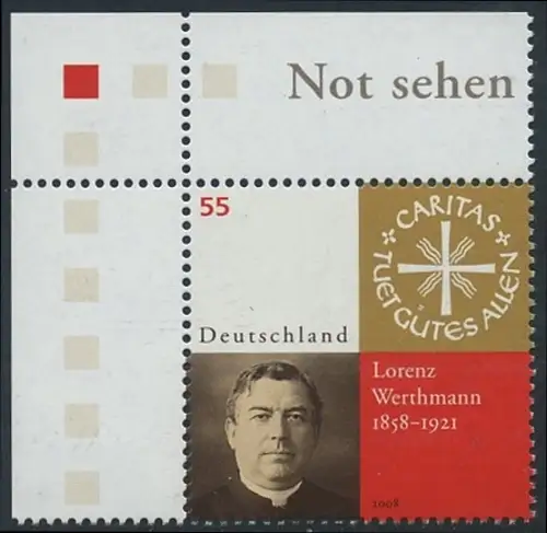BUND 2008 Michel-Nummer 2697 postfrisch EINZELMARKE ECKRAND oben links